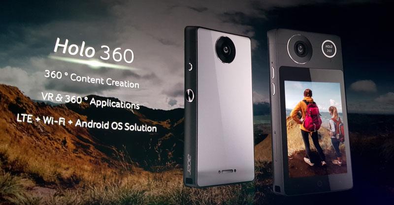 Upaya untuk tumbuh di pasar realitas virtual membuat Acer mengejar perangkat yang aneh namun menarik. Acer memperkenalkan kamera Holo 360, yang merupakan kamera 360 derajat pertama. Kamera ini bisa menangkap konten 3D, seperti kamera 360 derajat lainnya, dan bisa digunakan untuk menangkap, melihat, dan membuat konten untuk headset VR.